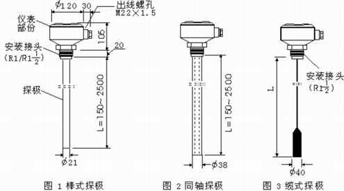 1. 本物位开关的探极长度可根据现场需要选择,棒式探极应小于2.5米,超过此长度应选用缆 式探极。